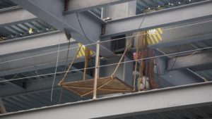 Photo #3 – Suspended Scaffold With Flame Retardant Blankets Protecting The Rope Supports